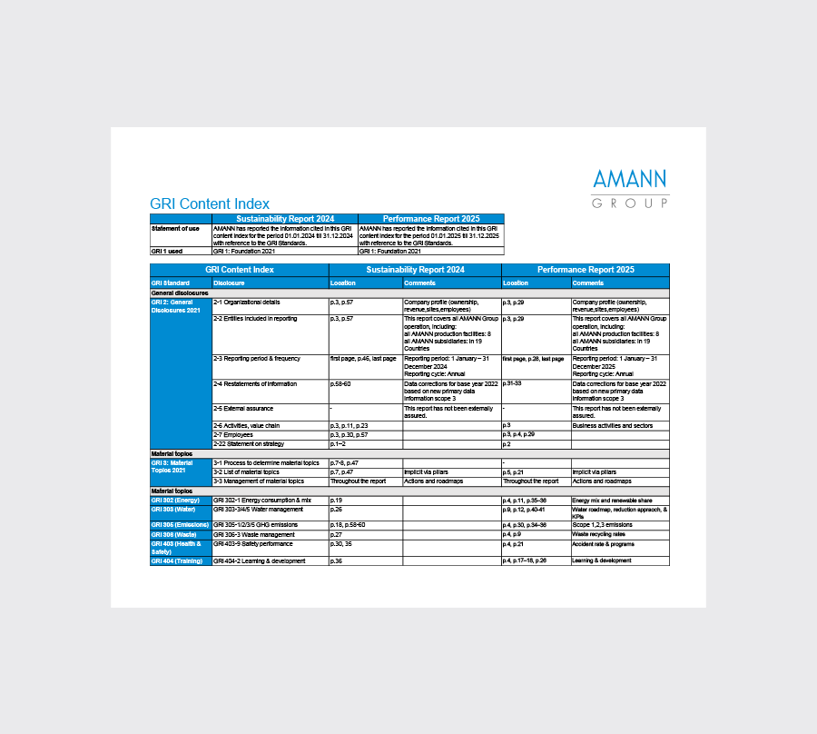 Společnost AMANN se již v roce 2019 připojila ke Global Compact OSN, největší a nejvýznamnější světové iniciativě pro odpovědné řízení podniků. Síť UN Global Compact podporuje společnosti ve strategickém zakotvení udržitelnosti na základě 10 univerzálních principů a v přispívání k plnění Cílů udržitelného rozvoje.